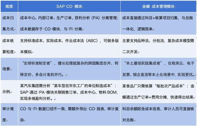 主要区别是:SAP适合精细化、全链条的成本控制,而金蝶则更注重简洁高效的成本归集。