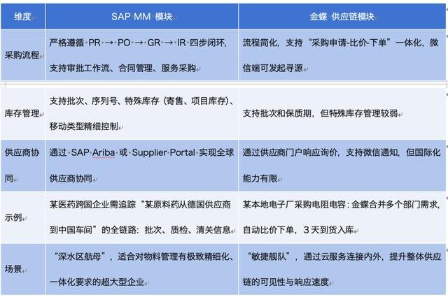 SAP在全流程合规和追溯能力上表现突出,而金蝶则在敏捷响应和本地协同效率方面更具优势。