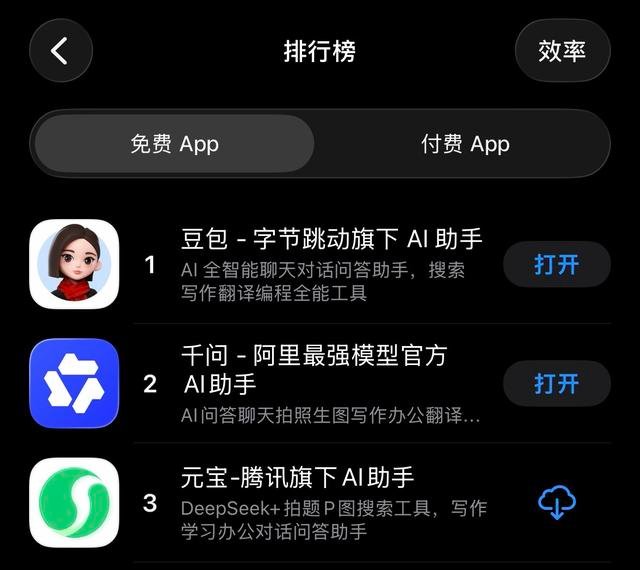 去年以来,众多国产 AI 工具应用霸榜 App Store 等手机应用商店,如字节跳动的豆包、阿里巴巴的千问。腾讯的元宝虽然也在榜单前列,但新兴行业只会记住排行榜的头部,连老二都不会多看一眼。