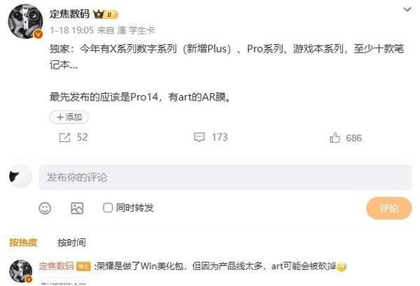 据业内人士透露,荣耀今年的笔记本更新将包括X系列、X Plus系列、Pro系列以及游戏本系列。目前,荣耀的笔记本产品线已经明确分为MagicBook Art系列、MagicBook Pro系列、X Plus系列和X系列。值得一提的是,在2026年的CES展会上,荣耀不仅展示了新款MagicBook Pro 14与X Plus系列,还正式推出了全新的电竞游戏本,进一步扩展其产品阵容。有消息称,由于产品线过多,“Art系列可能会被取消”。