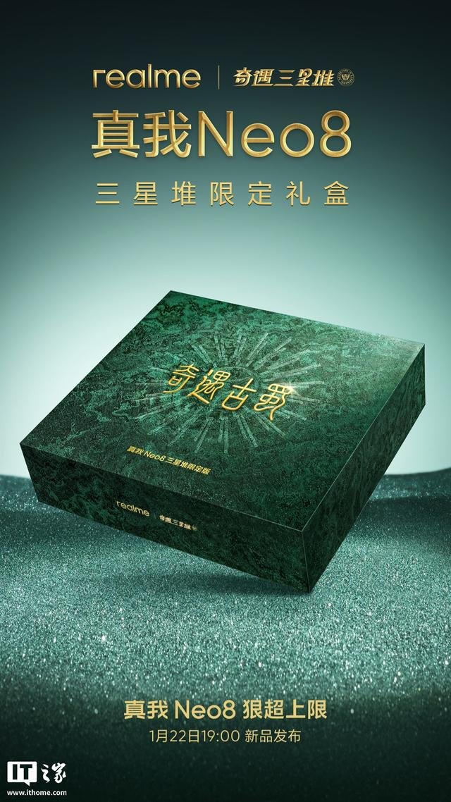 IT之家了解到,尽管官方并未详细说明该限定版的具体内容,但从早前的预热信息来看,这款机型很可能是“真我 Neo8 三星堆联名版”。