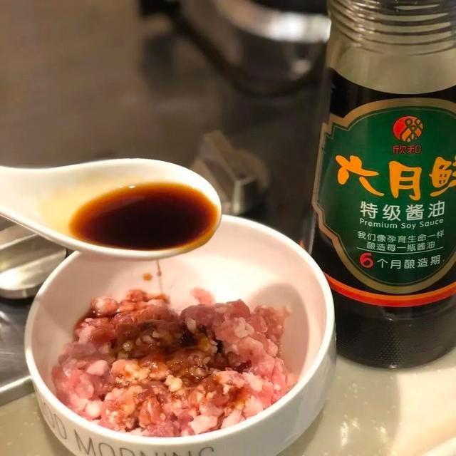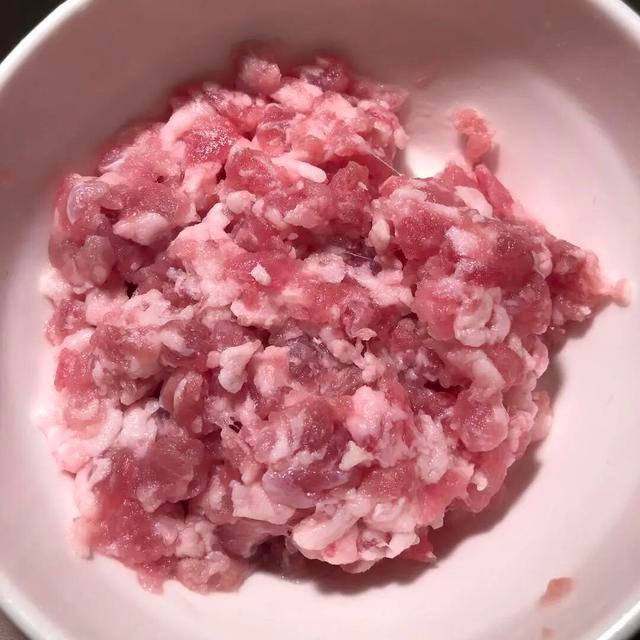 1. 将五花肉剁成肉末,肥瘦比例根据个人喜好调整,适当带点肥肉更佳。