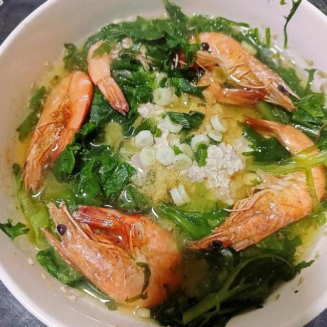 味道很好,清淡鲜美,还加了虾和一些蔬菜。
