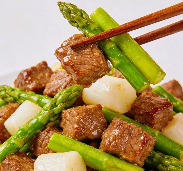 对于像芹菜香干炒鱼柳、芦笋马蹄炒牛肉粒这类需要掌握火候和翻炒节奏的菜品,智能辅助可以稳定节奏,配合人工把控起锅时机,兼顾效率与口感。