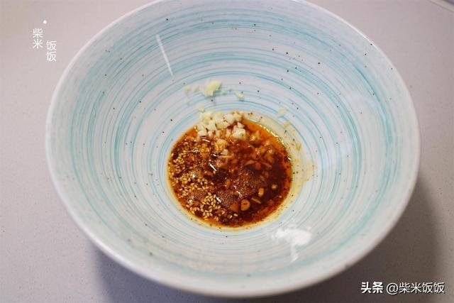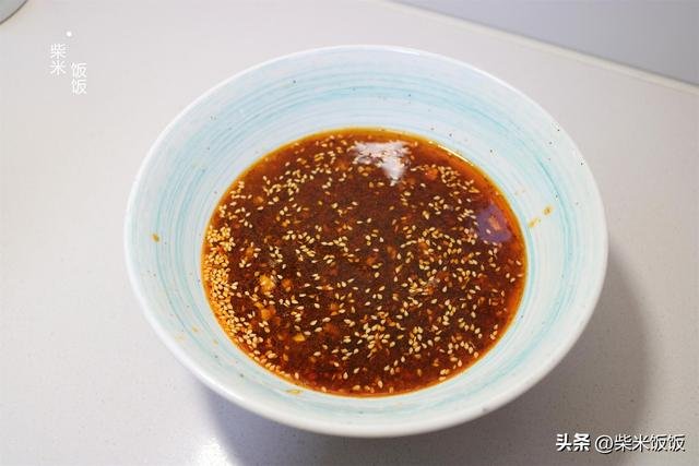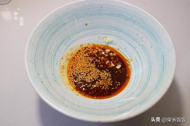 1,取一个大碗,加入蒜末、熟芝麻、辣椒粉和少许五香粉,倒入热油激发香味。