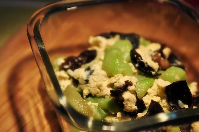 1、丝瓜切块,鸡蛋打匀,木耳泡发切碎。
