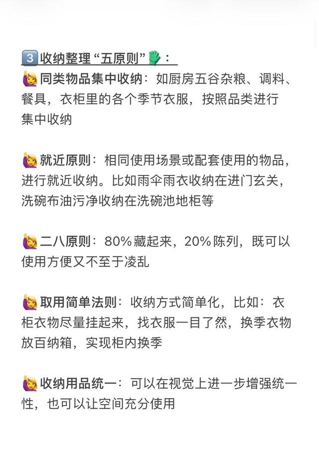 ♀️同类物品统一收纳:例如厨房中的谷物、调料、餐具,衣柜中不同季节的衣物,按类别集中存放