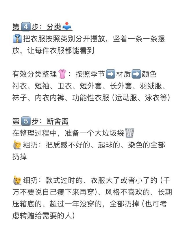 ♀️取用便捷原则:采用简单易行的收纳方式,如衣物尽量悬挂,便于挑选;换季衣物可放入收纳箱,减少柜内占用空间