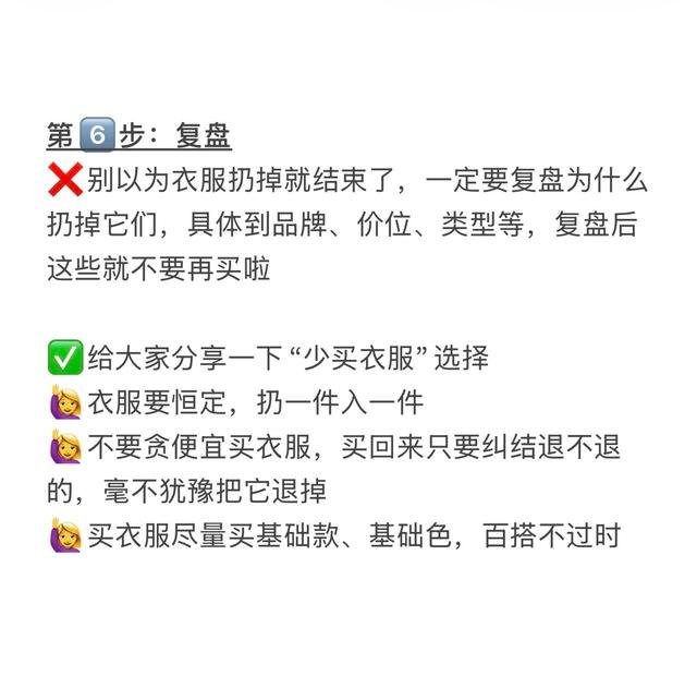 ❌不要以为丢弃就结束了,需回顾为何丢弃这些衣物,具体到品牌、价格、类型等,避免未来重复购买