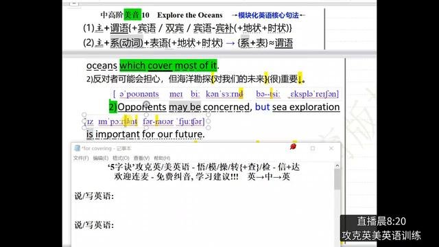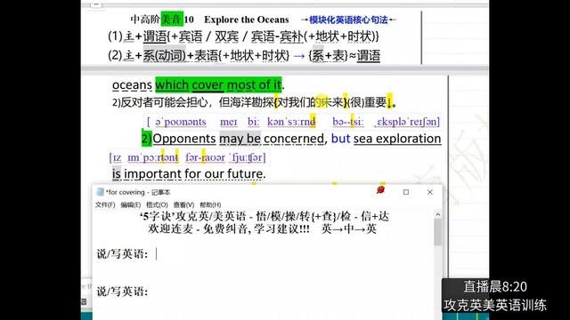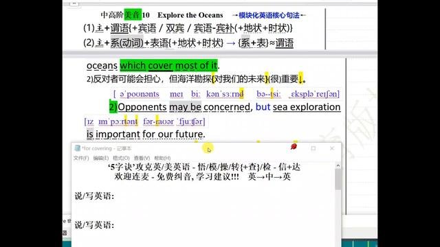 转音后接元音时,由于前面的“二”的口型会自然带出一个“or”,所以it's important for our future.注意这个单词important,发音为“猴色音”。important,important,但海洋探索对于我们的未来非常重要。中文中没有“对我们的未来”这样的状语结构,因此中文会将这部分提到句子前面。